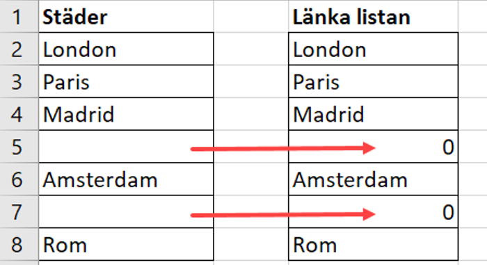 Länkad cell visar noll