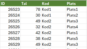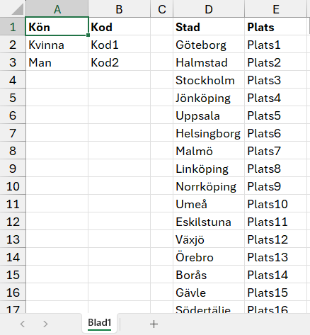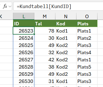 =”Kod”&SEKVENS(ANTALV(UNIK(Kundtabell[Kön])))