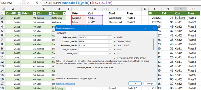 =XLOOKUP(Kundtabell[@Kön];$F$2#;$G$2#)