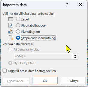 Välj Start – Stäng och läs in till… – Skapa endast anslutning.