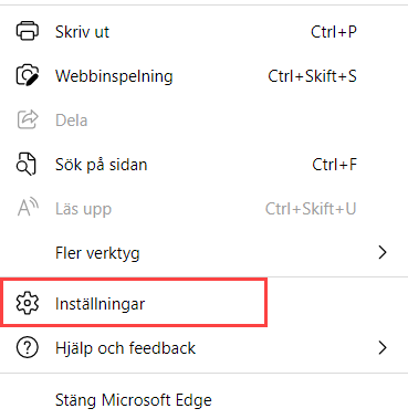 - I menyn klickar du sedan på Inställningar.