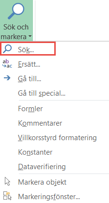 - På Startfliken klicka på Sök och markera, välj sedan Sök i menyn