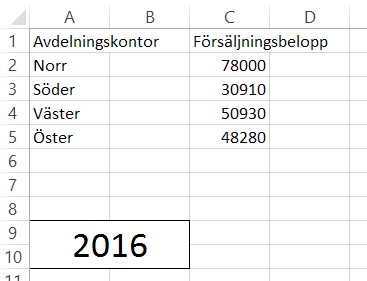 I detta exempel använder vi ett väldigt enkelt dataområde med några sammanfogade celler.