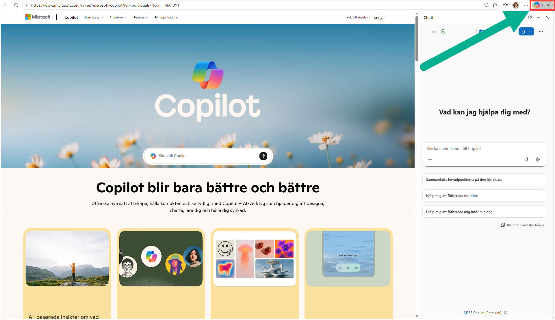 Via webbläsaren Edge kan du be Copilot sammanfatta den webbsida du har öppen.
